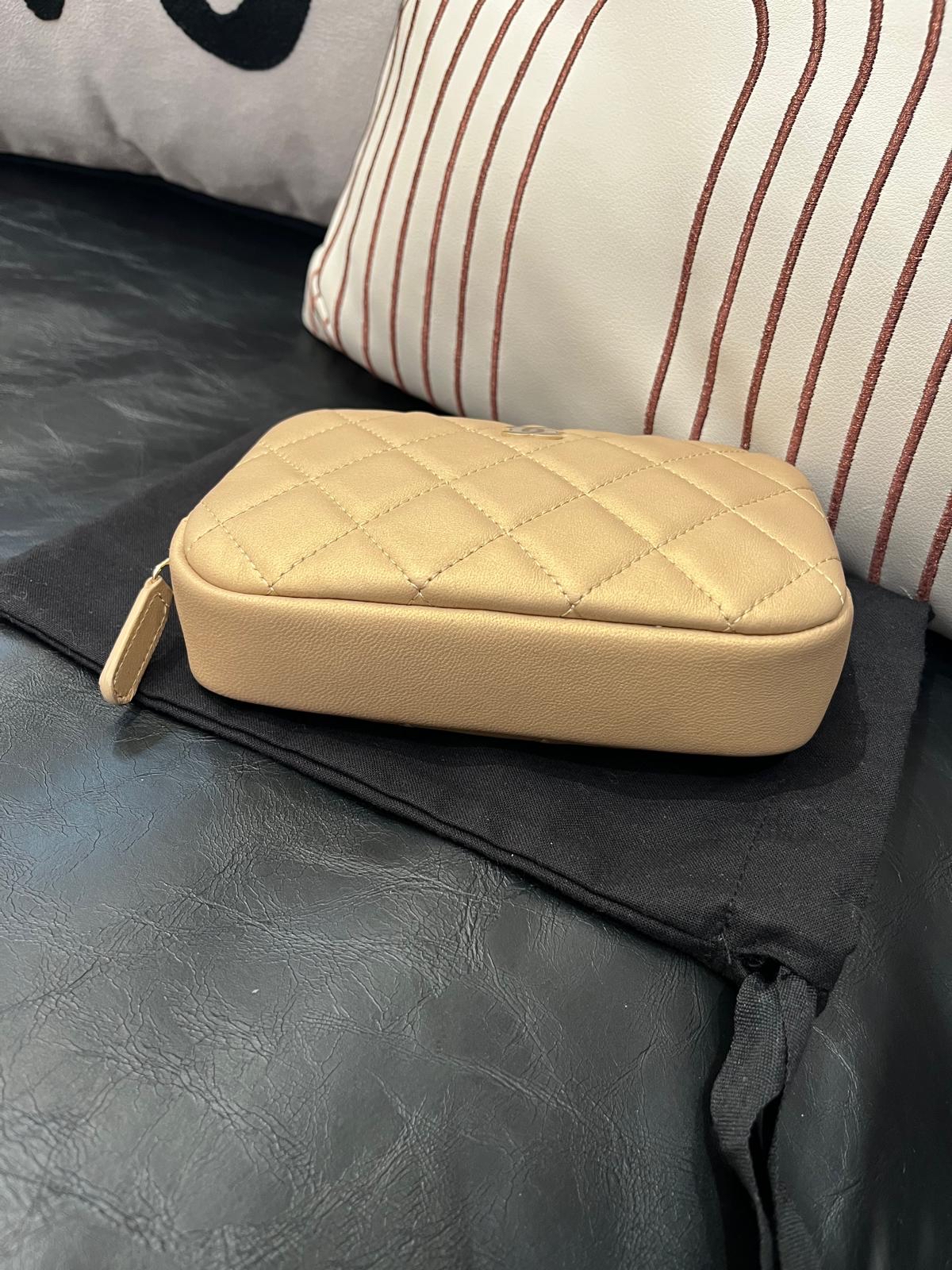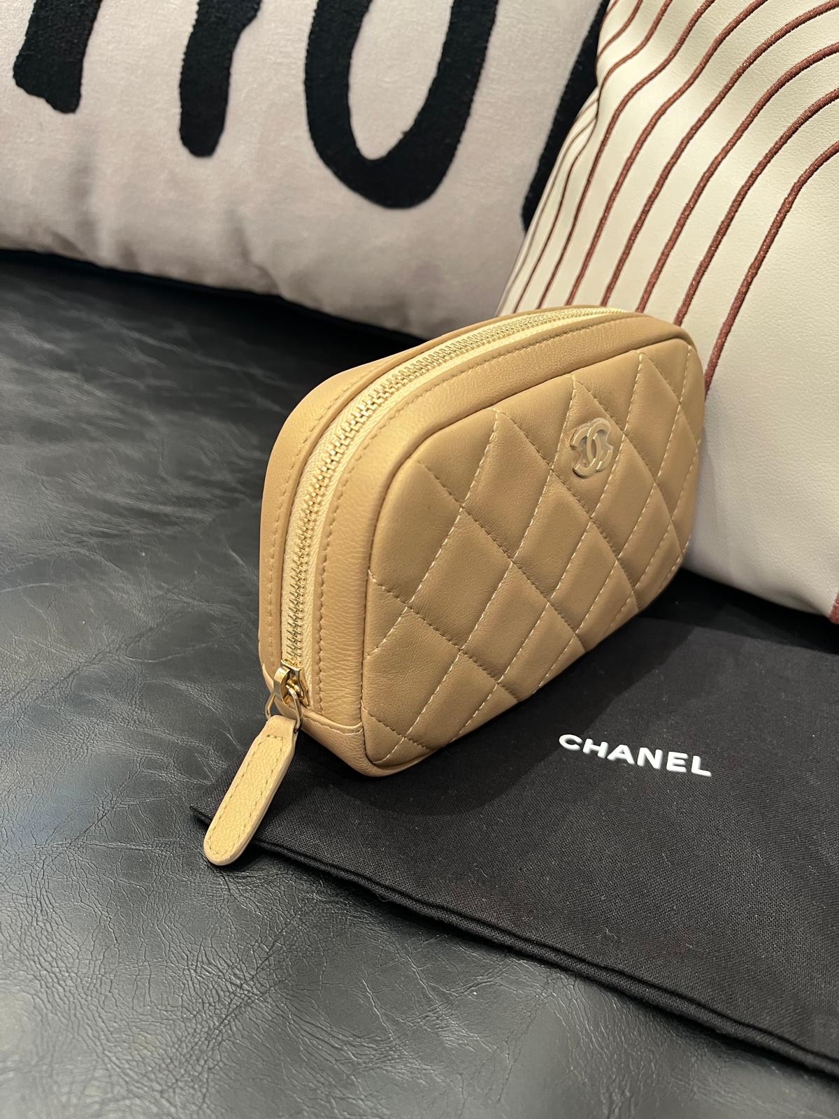 未使用品Chanel pouch calfskin 100%Authentic,unused,✅27card✅dust bag