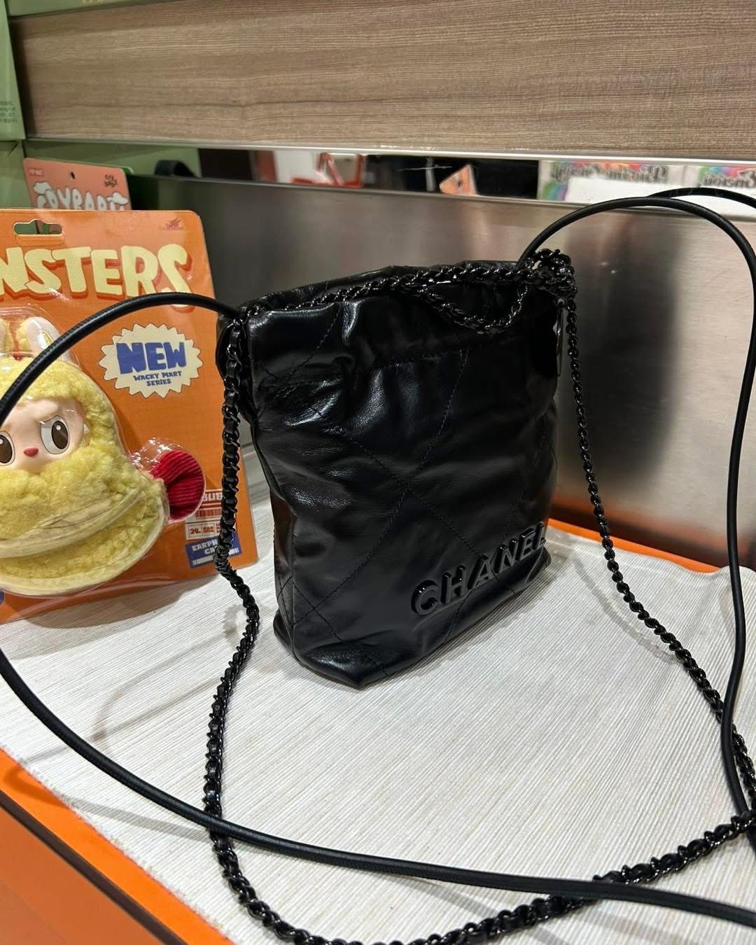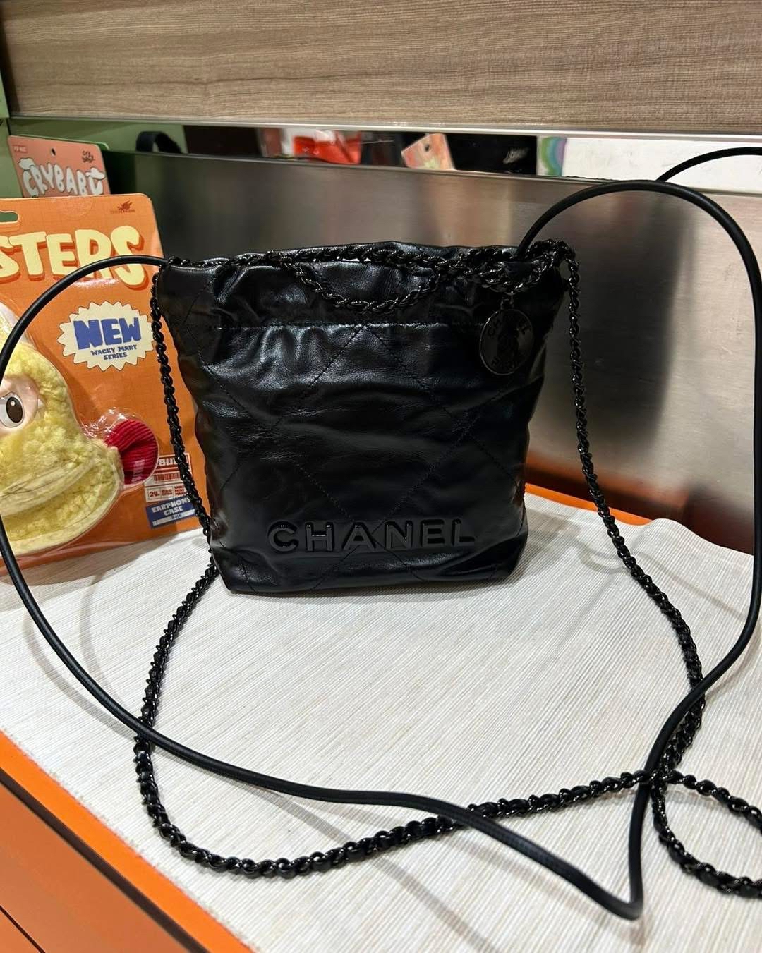 Chanel 22 mini so black calfskin 100%Authentic ,98%new ✅chip✅dust bag✅box