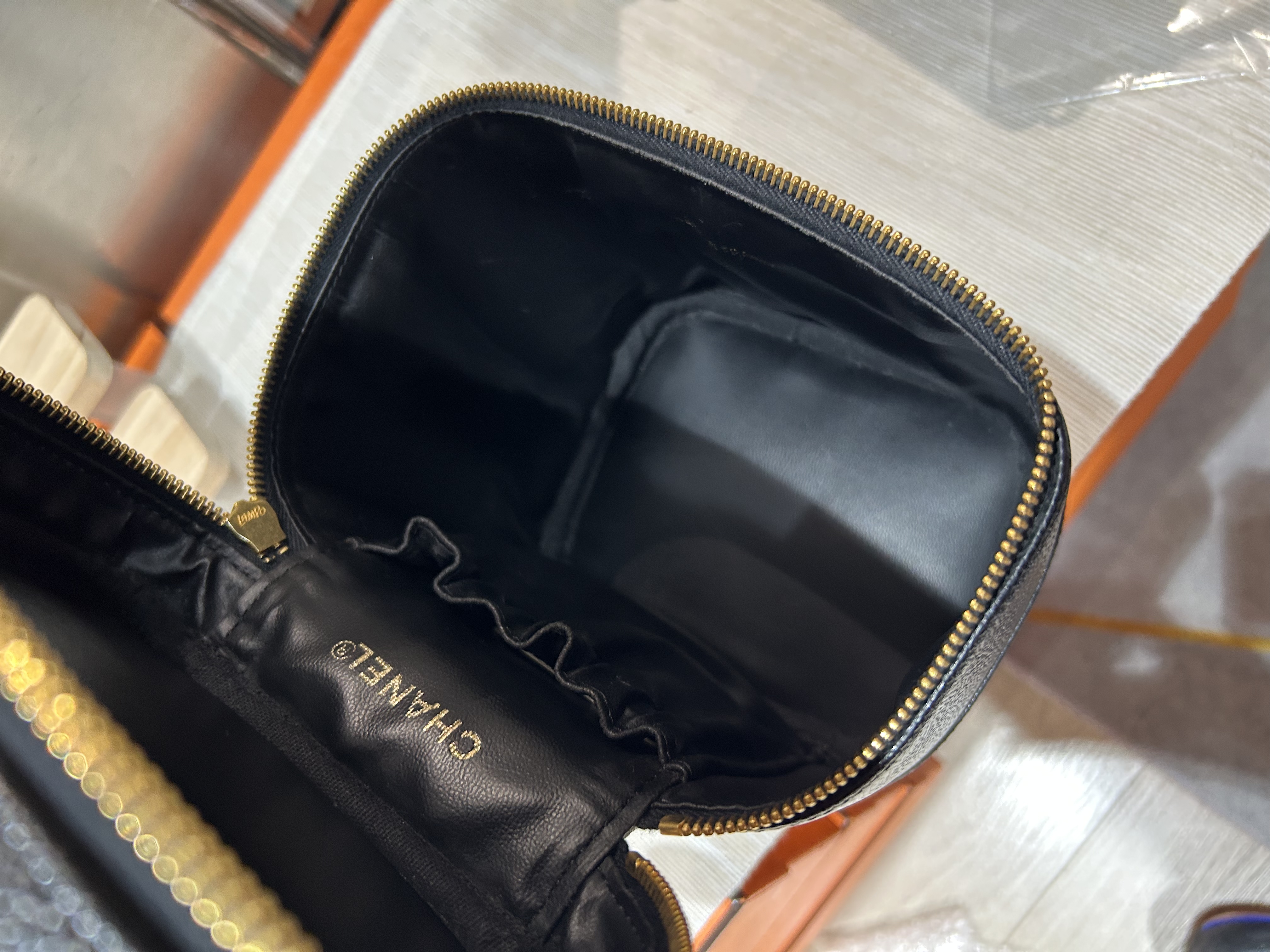 Chanel vanity 魚子醬牛皮金鏈中古化妝箱 100%Authentic ,95%new ✅7*CARD貼✅塵袋