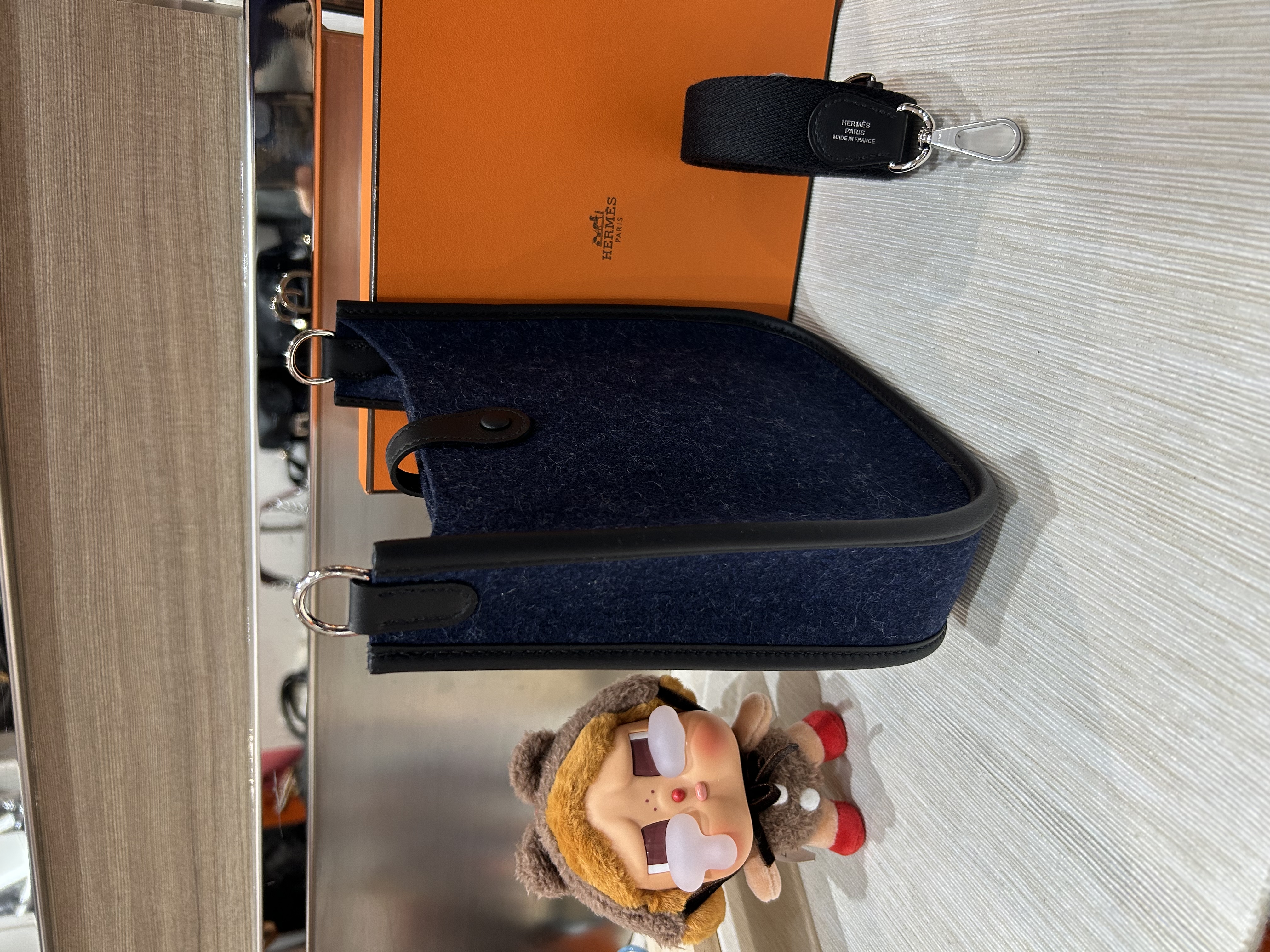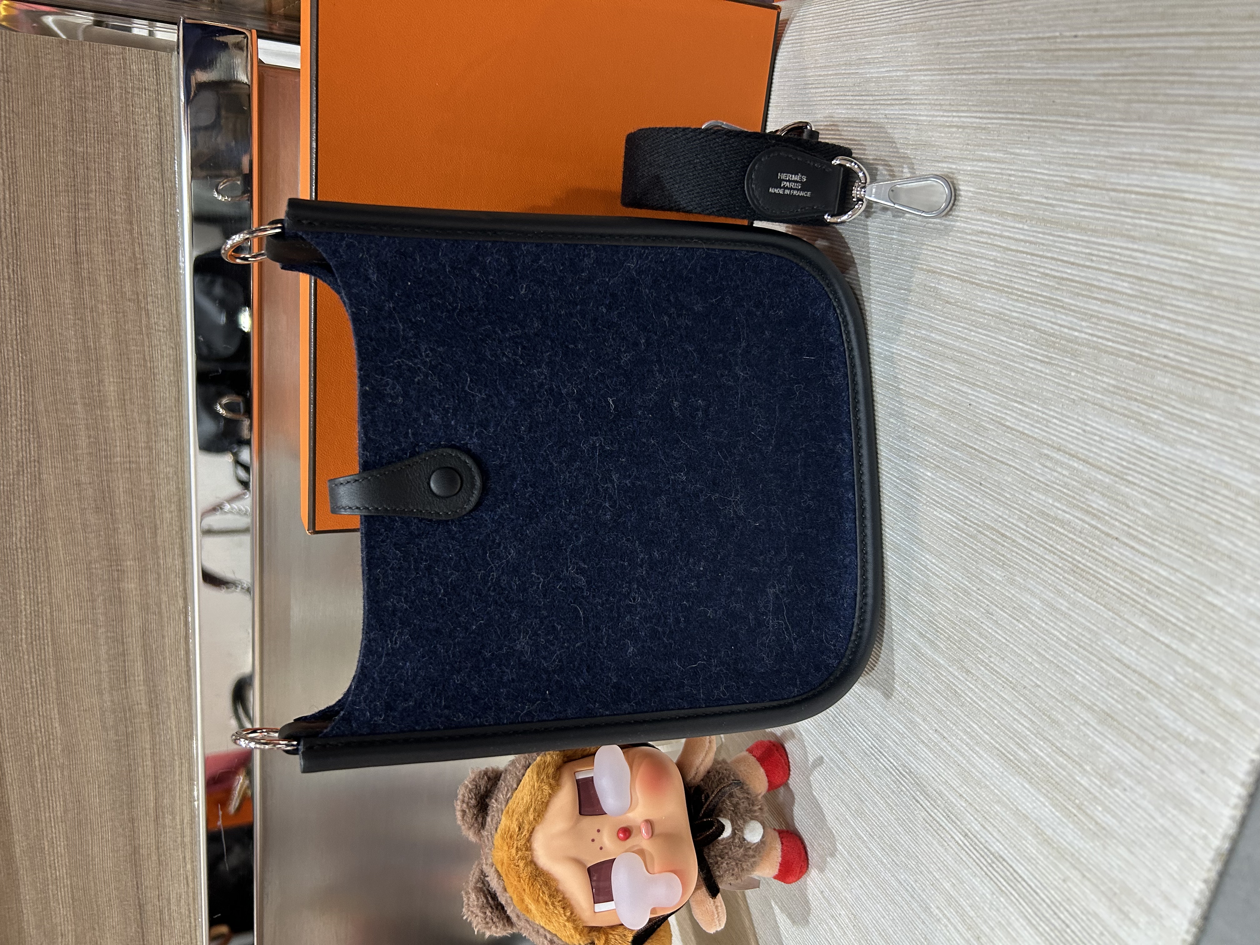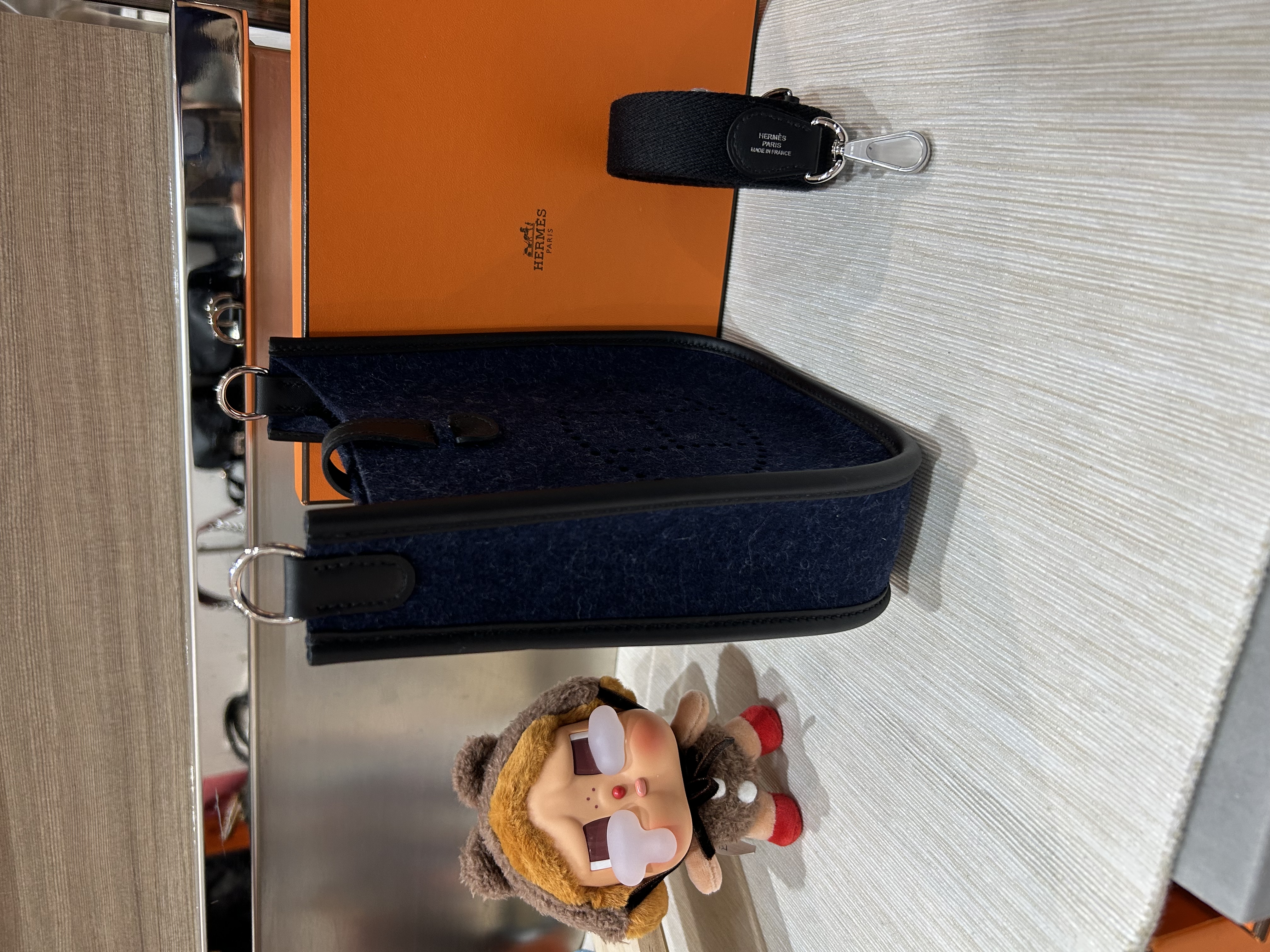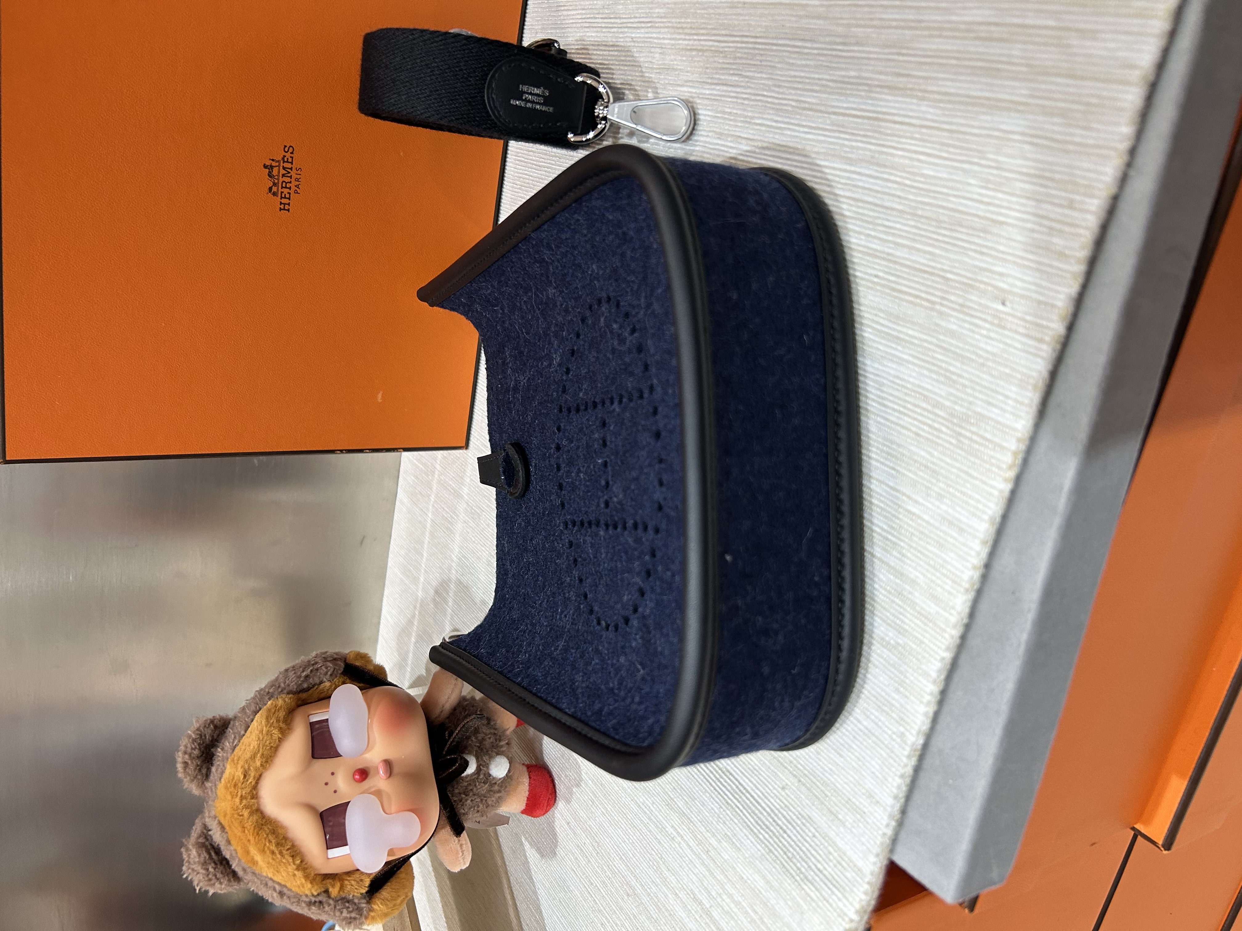 HERMES Mini Evelyne 16 ,2Z 午夜藍 Bleu Nuit牛皮 Feutre 羊毛氈銀扣,STAMP Z , 100%Authentic,全新未使用品 ✅收據✅dust bag✅box