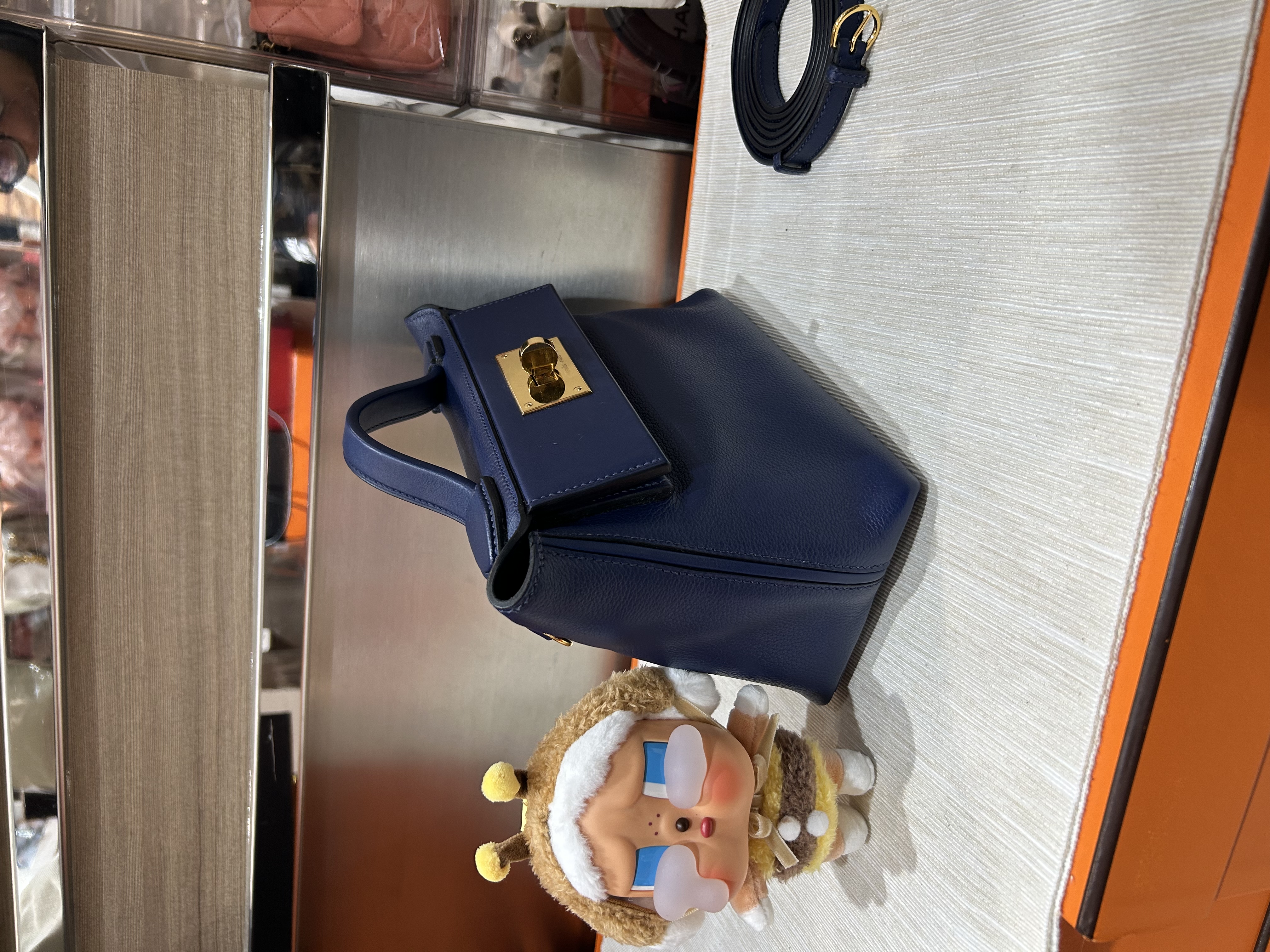 Hermes Mini 2424 Blue Nuit Stamp Z 100%Authentic, 98%New ✅Dust bag✅Box