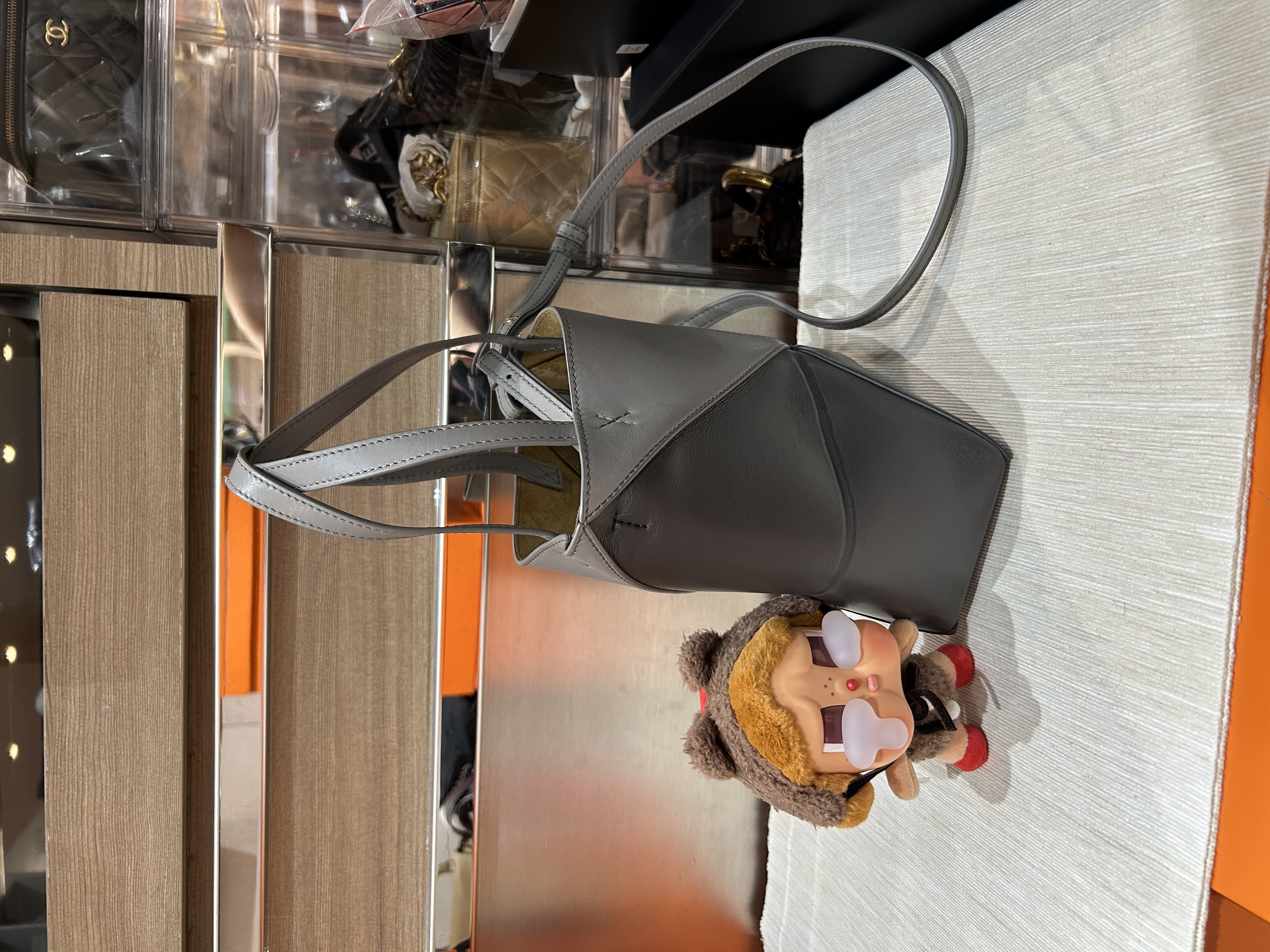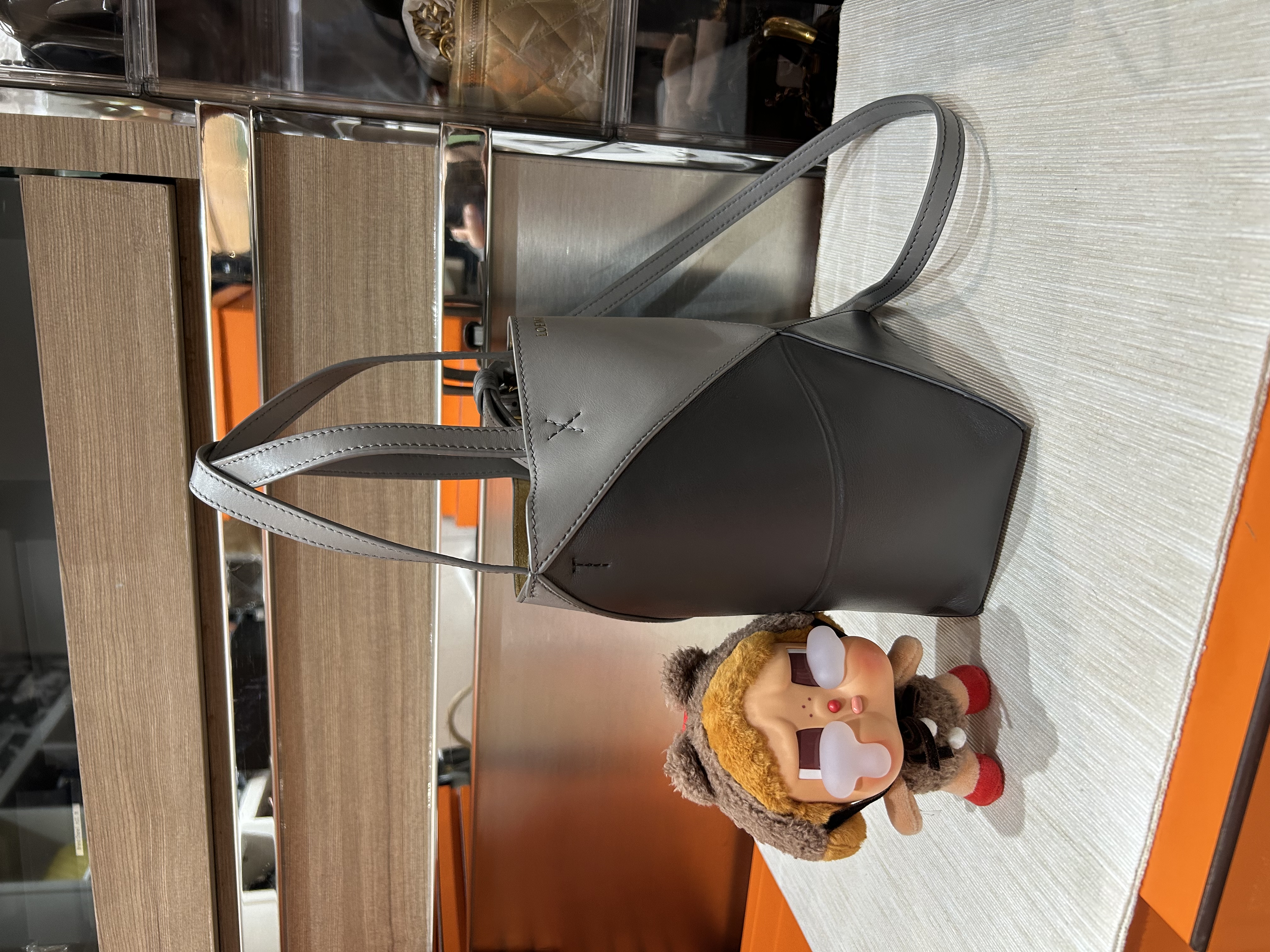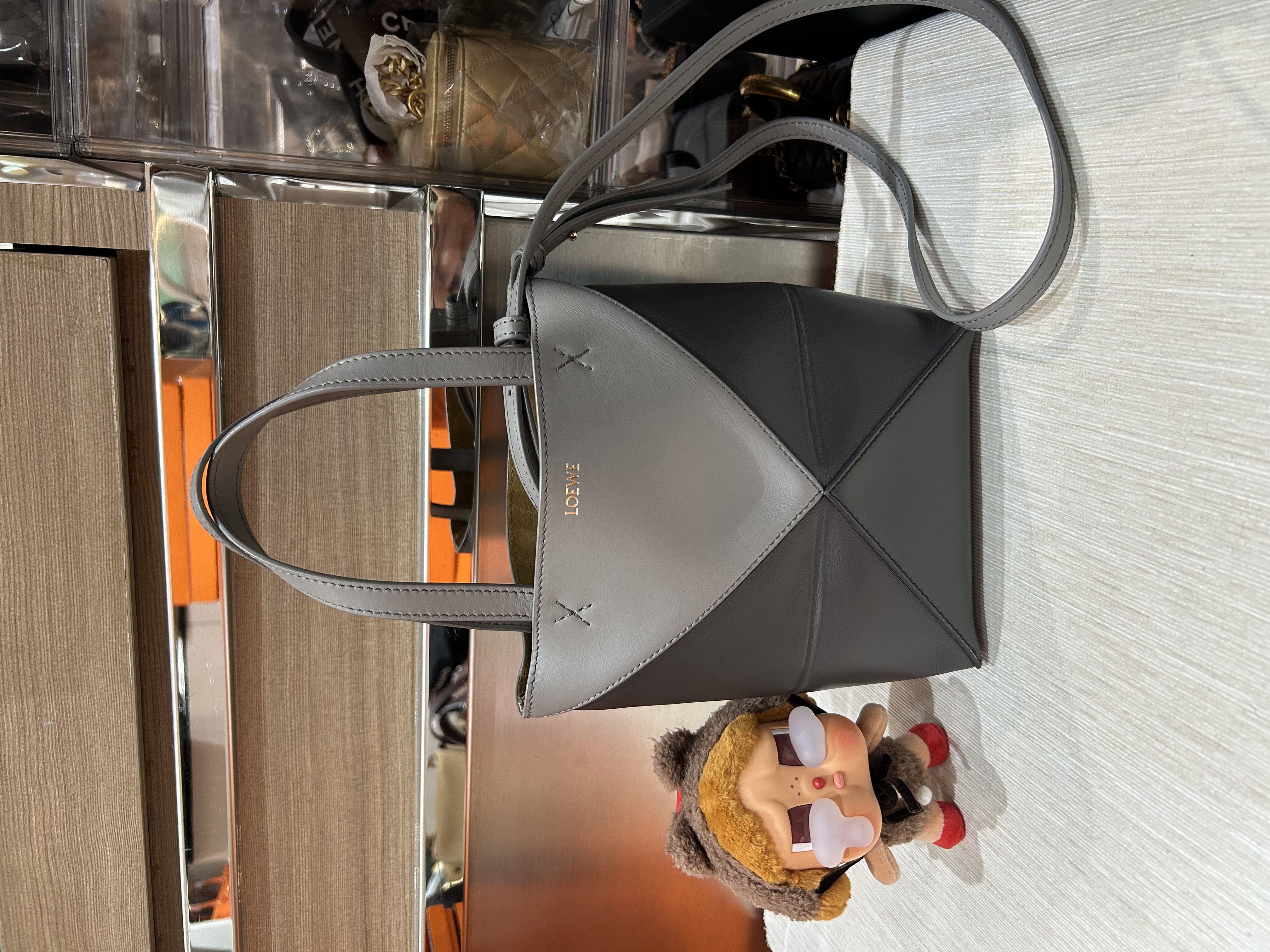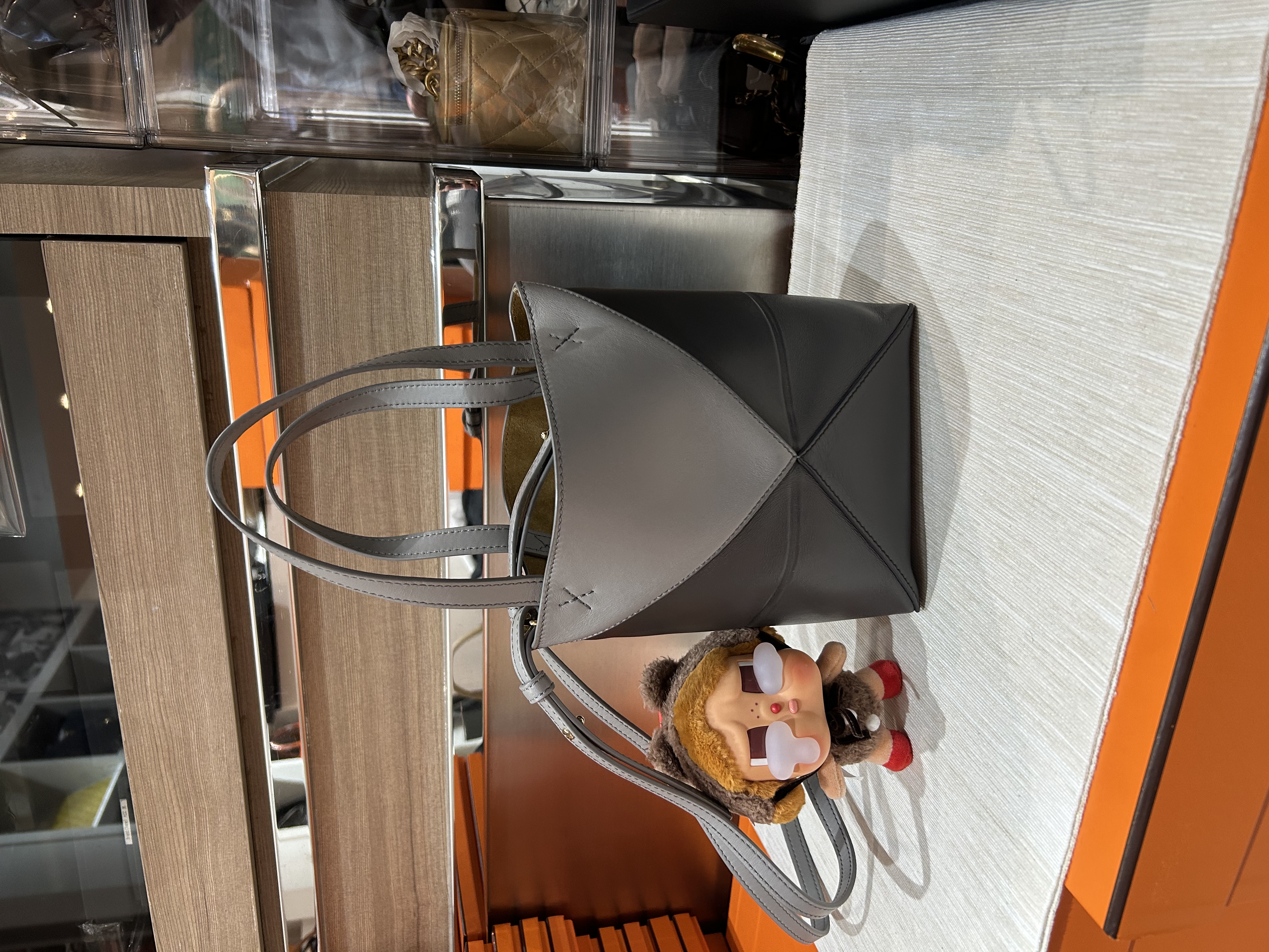 Loewe Mini Fold Tote bag 深灰牛皮拼銀色 100%Authentic, 95%New ✅Dust bag